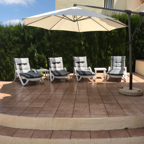 The Villa which has been equipped to a high standard with no expense spared has 3 double bedrooms and two bathrooms, a fully fitted kitchen with dishwasher and washing machine. The Lounge which has 2 low-slung settees that could accommodate 2 additional people also has dinning furniture and double door access to the large under cover terrace. Outside there is a large family playroom and under-build and not to mention again the 4 separate terraces ensures there is plenty of room for everyone to find there own space.